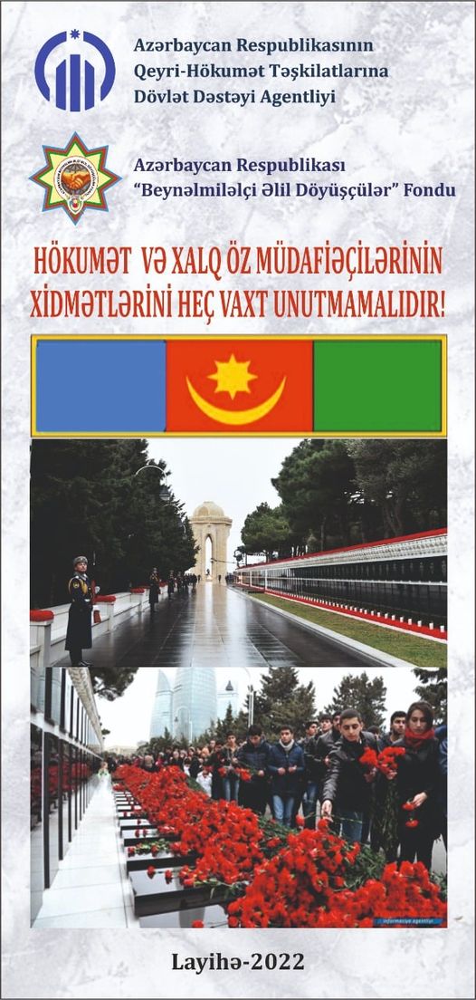 Azərbaycan Respublikası Beynəlmiləlçi Əlil Döyüşçülər Fondu, Azərbaycan Respublikasının Qeyri-Hökumət Təşkilatlarına Dövlət Dəstəyi Agentliyinin maliyyə yardımı ilə 01.02.2022-ci il tarixindən 01.06.2022-ci il tarixlərini əhatə edəcək, Hökumət və xalq öz müdafiəçilərinin xidmətlərini heç vaxt unutmamalidir! layihəsinin icrasına başladı.
