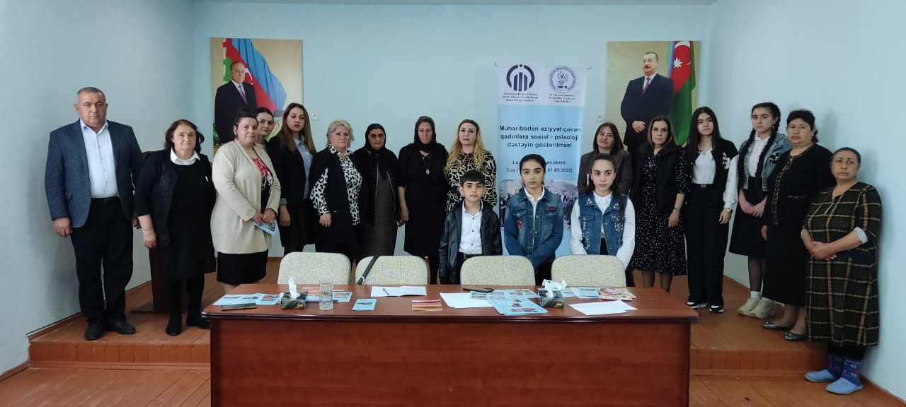 Azərbaycan Respublikası QHT-lərə Dövlət Dəstəyi Agentliyinin maliyyə dəstəyi ilə Ağcabədi rayon Xanoğlan Həsənov adına Hindarx qəsəbə 2 saylı ümumi orta məktəbdə Şəhid ailələri, qazilər və müharibədən əziyyət çəkən insanlarla görüş keçirildi. İşsizlikdən əziyyət çəkən insanların sosial durumu xüsusi qeyd edildi.Şəhid ailəsi ilə görüşdə ,nəvəsindən uşaqlarının zorla alındığı və məsələnin aylarla həll edilmədiyi barədə,bu məsələnin həllində kömək etməyimiz xahiş olundu. Nəzarətə götürdüyümüz məsələ ilə bağlı ərizələr hüquqşünas tərəfindən müxtəlif qurumlara çatdırılmışdır.Müəllim və şagirdlərlə fərdi şəkildə sosioloji testlər aparılmış,psixoloq Vəfa Abbasova və hüquqşünas Ağamirzə Bağırov tərəfindən görüşlər keçirilmiş,məsləhətlər verilmişdir.Hamısıah bütün şəhidlərimizə rəhmət eləsin.Məktəbin direktoru Elminaz Hüseynova Təşkilatın “Təşəkkürnamə “si ilə təltif edildi. “Müharibədən əziyyət çəkən qadınlara sosial-psixoloji dəstəyin göstərilməsi “layihəmizi dəstəklədiklərinə görə Agentliyin rəhbərliyinə və bütün əməkdaşlarına təşəkkürlərimizi bildiririk.