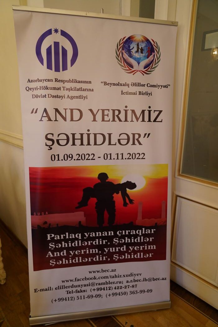 Məlumat verdiyimiz kimi Azərbaycan Respublikasının Qeyri-Hökumət Təşkilatlarına Dövlət Dəstəyi Agentliyinin maliyyə dəstəyi ilə “Beynəlxalq Əlillər Cəmiyyəti” İctimai Birliyi (BƏC İB) “And yerimiz- Şəhidlər”! adlı layihə həyata keçirir.