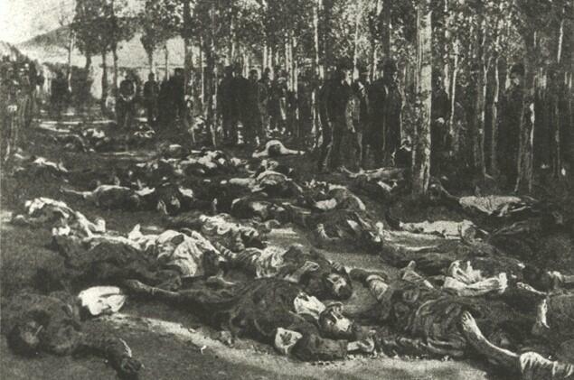 Bu foto 1914-cü ilə aiddir. Bu fotoda ermənilərin kürdləri məhv etməsi əks olunub.