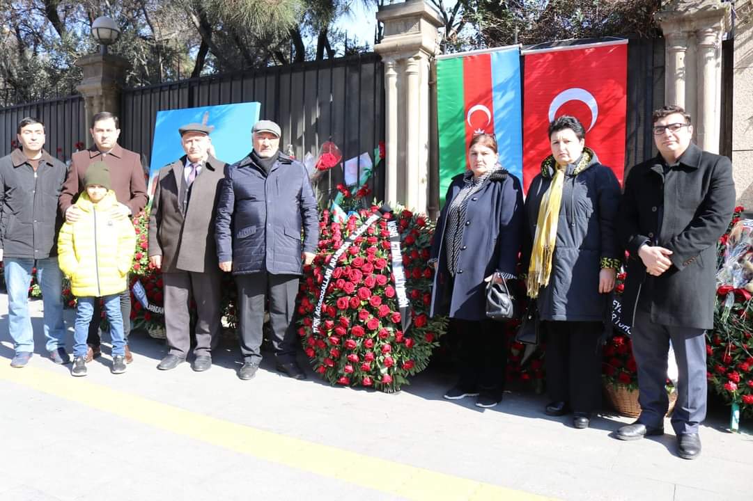 Səfirliyin önündə yaradılmış guşənin qarşısına əklil qoyaraq, zəlzələ zamanı həlak olanların xatirəsini ehtiramla yad ediblər.