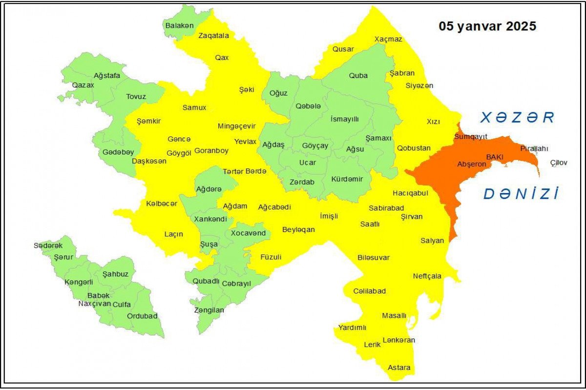 Bakıda və Abşeron yarımadasında, eyni zamanda bəzi bölgələrdə yanvarın 5-də gözlənilən küləkli hava şəraiti ilə bağlı sarı və narıncı xəbərdarlıq verilib.